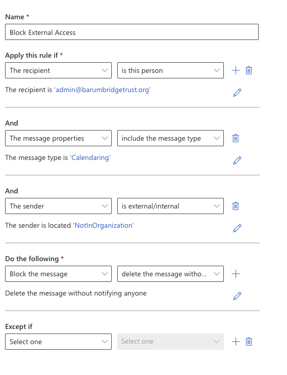 Create rule in Exchange admin centre and customise as required example below.